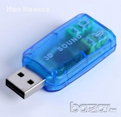 Ако звуковата карта на вашият компютър е изгоряла, с помощта на тази външна звукова карта ще можете да решите проблема. Няма нужда от инсталационни настройки. Подходяща както за лаптоп, така и за персонален компютър. Аналогова технология за стерео канален звуков ефект, картата работи със всички операционни системи. Цена-6лв.