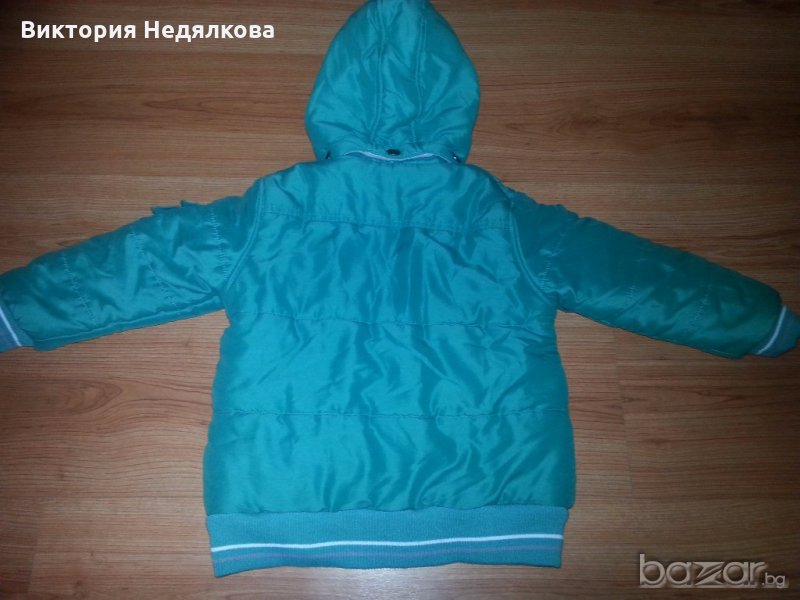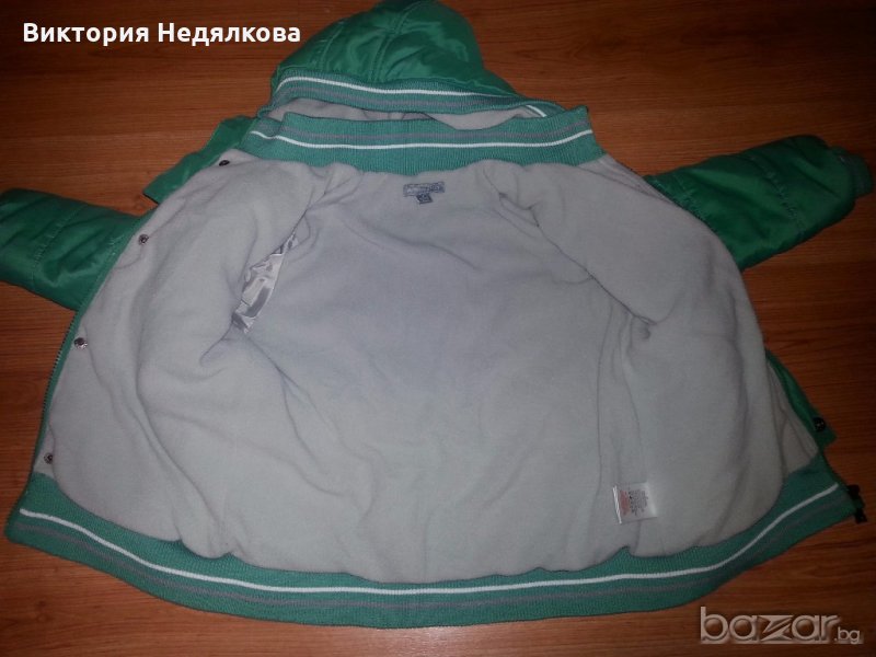 Якето е в отлично състояние, на новозеландската фирма Pumpkin Patch. Отвътре е с полар, достатъчно плътно и за най-студените зимни дни. Качулката се сваля. Размер по етикет 4г.- 106 см.