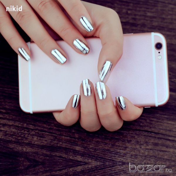 Задължително под лака нанесете база,разклатете огледалния лак и нанесете след изсъхване на базата, Нанасяйте няколко слоя,до постигане на желания резултат.