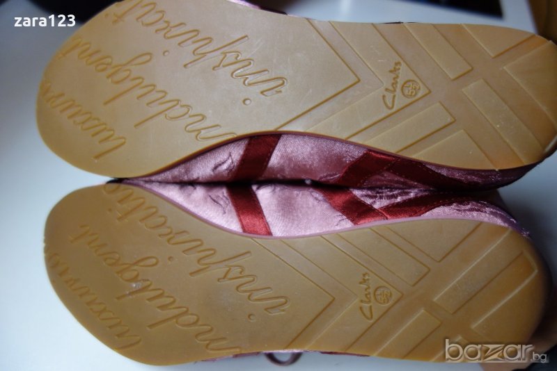 Обувките са сатен + велур, чисто нови, 5.5ти номер по английската номерация което е 39ти номер или 38.5 по европейската Кларкс номерация. Без кутия са. Стелка - 25см