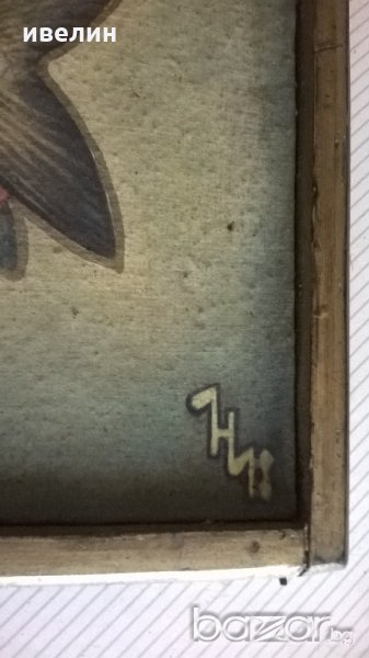 стара картина-риба.масло на каширано на фазер платно,подписана,дървена рамка с размери 28см/47см.