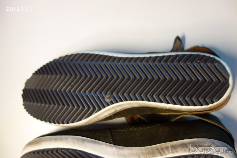 Страхотни кожени обувки Кларкс със закопчаване около глезена. Няма етикет за материите, но си личи че са кожени и стелката и външната част. Гумената част отстрани на подметката е с ефект като зацапана, не е от носене, такъв е модела. Чисто нови са, без кутия. 4ка са по английската номерация.