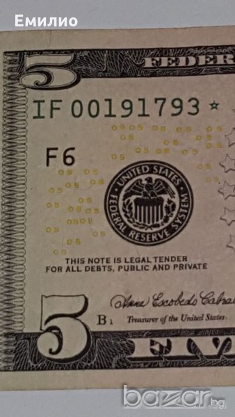 $ 5 STAR DOLLARS W/ 6 DIGIT 2006 VF-XF, снимка 1 - Нумизматика и бонистика - 18364765 $ 5 STAR DOLLARS W/ 6 DIGIT 2006 VF-XF, снимка 2 - Нумизматика и бонистика - 18364765 $ 5 STAR DOLLARS W/ 6 DIGIT 2006 VF-XF, снимка 3 - Нумизматика и бонистика - 18364765 $ 5 STAR DOLLARS W/ 6 DIGIT 2006 VF-XF, снимка 4 - Нумизматика и бонистика - 18364765 $ 5 STAR DOLLARS W/ 6 DIGIT 2006 VF-XF, снимка 5 - Нумизматика и бонистика - 18364765 1/5