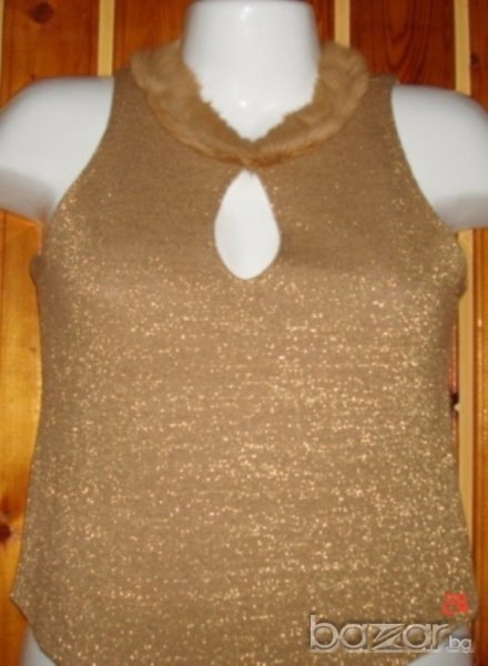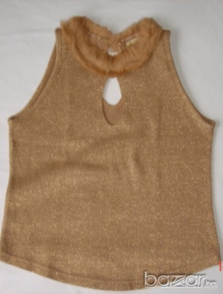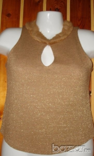 Плетен,със златисти нишки ламе,около врата с пухче,