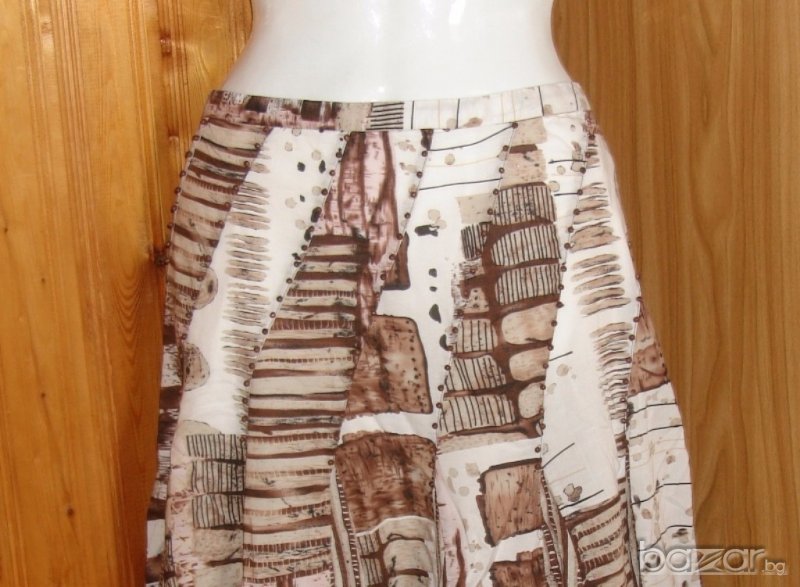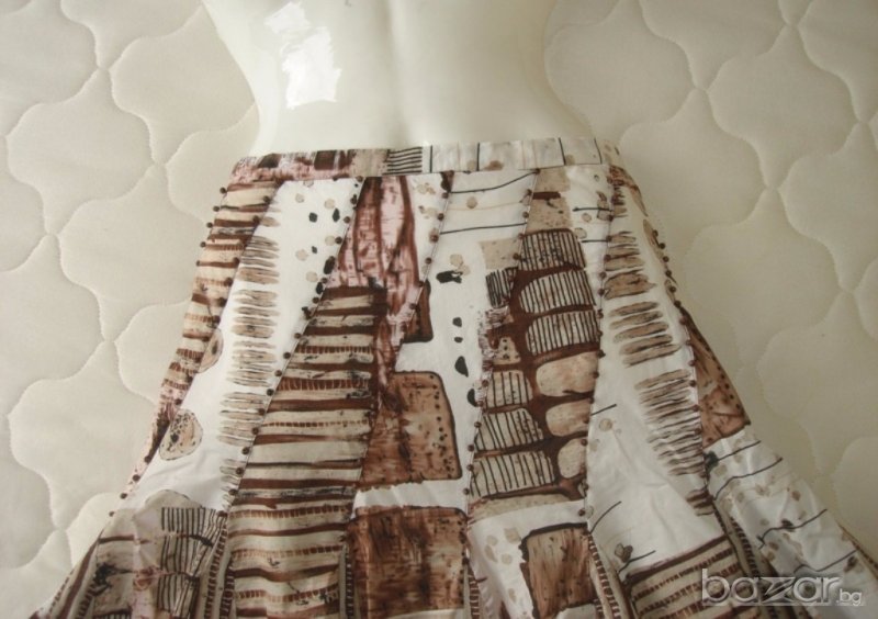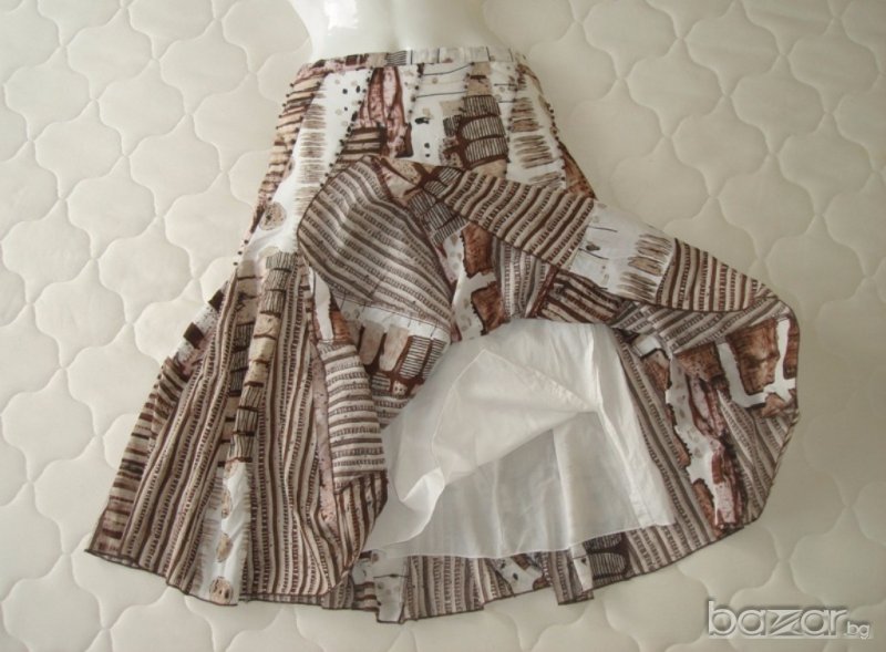 е с бяла подплата.Талия - 40 см,дължина - 73 см, няма подгъв,на оверлог е. ханш - 50 см. Цип отзад.