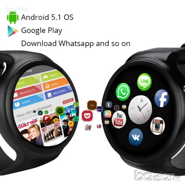 Последен модел 2017 година Смарт часовник с Android Lollipop. GPS, Google Play, Пулсомер, време, крачкомер, 3G, WiFi, Bluetooth и безброй екстри.