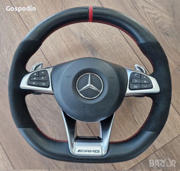 Волан черен за С,Е класа Мерцедес AMG с палци хром W205 C205 W218, W213 Изглежда като нов2017г. само волан -380EUR