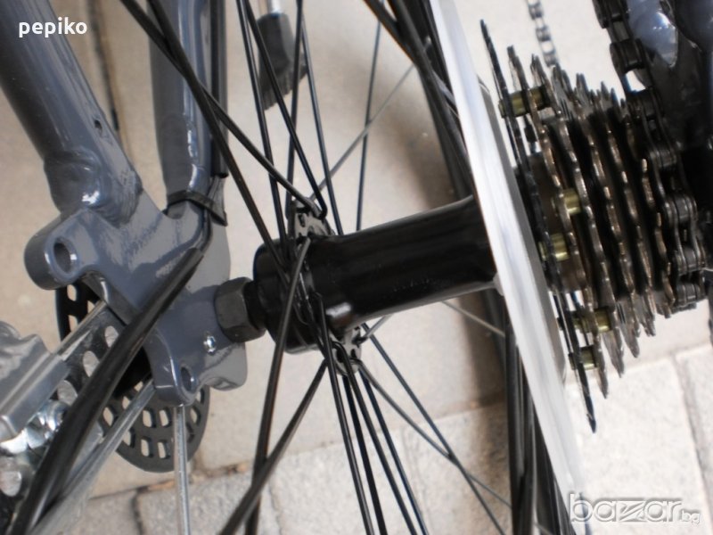 НОВ градски алуминиев велосипед HELIX LUX 28 цола модел 2016г.специална селекция сглобен във България,олекотена алуминива рамка алуминий 7005 28 цола с 21 скорости,фиксирани превключватели SHIMANO SL-RS 35 TOURNEY 7 х 3,алуминиеви курбели,пластмасови педали,преден отклонител SHIMANO,средно движение касета SHIMANO,пластмасов предпазител на веригата,оригинални Италиански пластмасови калници,алуминиев много здрав багажник за дисаги,заден отклонител SHIMANO TX 35 TOURNEY,алуминиево колче на седалката VVL COMP,спортна силиконова седалка ALPINE SELLE ITALY,алуминиева раздвижна лапа на горе и на долу,алуминиево кормило с три захвата,спортен,градски и туристически,задна алуминиева главина,задни венци SHIMANO MF-TZ 21,предна динамоглавина SHIMANO DH-3N31-NT,предна и задна алуминиеви вибрейк спирачки,преден амортисьор ZOOM MASERA,предна и задна алуминиеви двойностенни усилени капли,емайлирани спици в специална оплетка в групи по четири,гуми с безшумен грайфер и светло отразителен кант,подсилени КЕНДА 28 х 1.75,осветление от пред и от зад с динамоглавина,алуминиеви лостчета на спирачките,подходящ за ниски и високи хора,размер на рамката 49 х 59 см.изключително лек,тегло 14.5 кг.единична бройка,много елегантен,уникат.