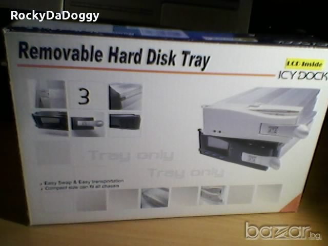 Продавам употребявано чекмедже (tray/caddy) на фирмата Icy Dock модел MB122ARCK. То е предназначено за монтиране в него САМО на 3.5 инчов ПАТА диск. Чекмеджето е съвместимо с мобилните дискови рак системи на фирмата модели MB122AKGF, MB452UK и MB123AK.