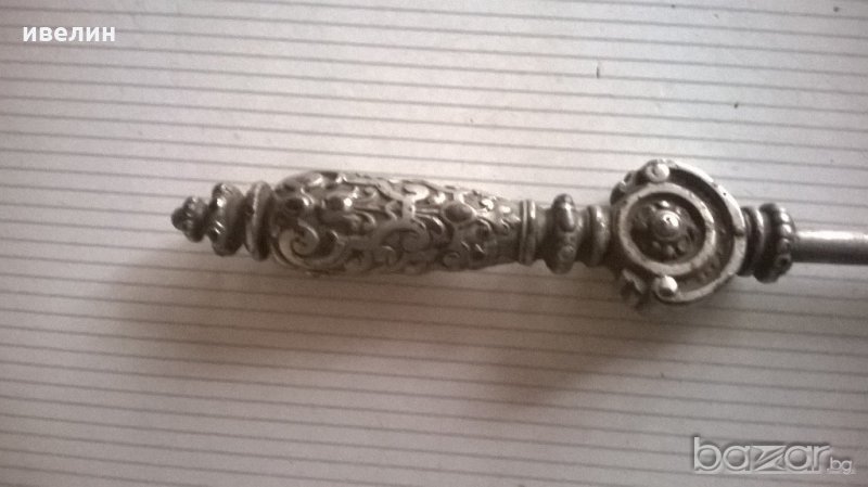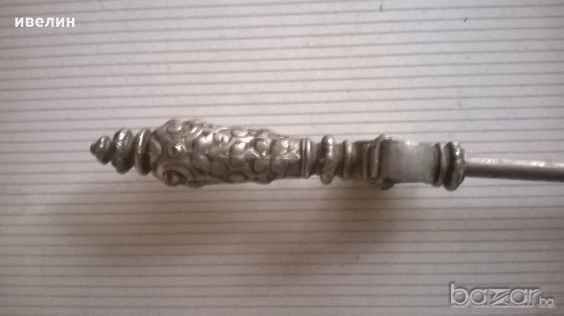 стара лопатка за жар.богато филигрирана бронзова дръжка,метален корпус.дължина 64см,само дръжката 15см.