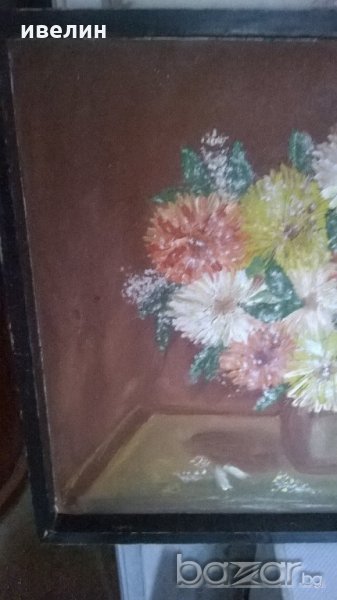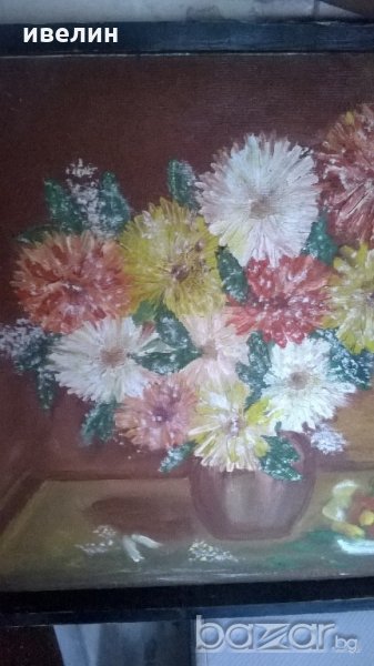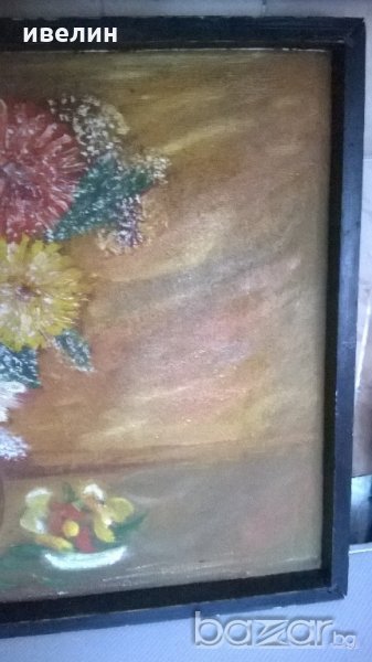 картина-цветя.масло на шперплат с дървена рамка.размери 61см/81см.