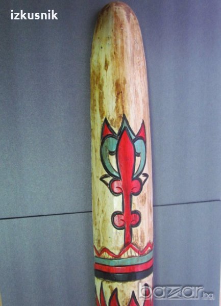 Ръчна изработка. Черно дърво декорирано в бяло, червено и светло синьо.