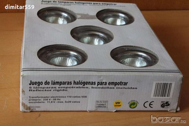 Продавам нови, неползвани, маркови метал-халогенни мощни луни за вграждане, подходящи за дом, офис, магазини. Произведени в Испания, от там съм ги донесъл, това са компактни луни за вграждане от стомана, алуминий и закалено стъкло. Комплект 5 броя, всички с крушки филипс, 70 вата, 7000 лумена, 6000 часа живот, комплект с кабели, клипси и трансформатор. Само майсторът ви трябва да ги монтира, всичко необходимо за монтажа е налично в кутията. Цената, на която ги продавам, е 70 лв. Не се коментира, предоговаря и тем подобни глупости! Ако ви трябват, звънете на номер: 0877487040 или пишете на съобщения във формата за контакти срещу обявата във сайта! Там можете да задавате и въпросите си на, които ще отговоря при първа възможност, най късно във рамките на 24ч! На всички ви желая лек и хубав ден!