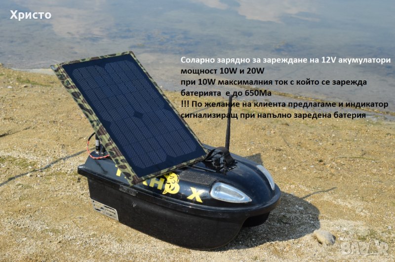Лодка за захранка с 5,8GHz радио управление с дисплей. Бърза, тиха, надеждна, стабилна на вълни, с обхват повече от 400м. В цената са включени батерии, зарядни на 220V, чанта за транспорт и съхранение. По желание на клиента лодката може да се окомплектова и с безжичен сонар с обхват над 300м, GPS, автомобилно зарядно, соларно зарядно, литиеви батерии за дистанционното, допълнителна батерия с капацитет до 37Ah.