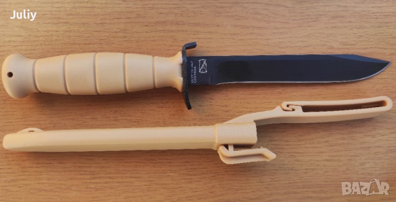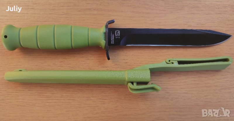 Ножа е с фиксирано острие/фултанг/,остър и добре заточен.