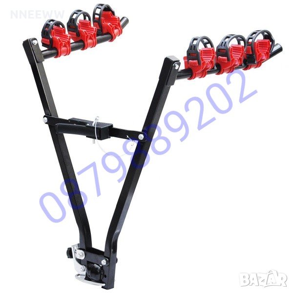 Багажник за превозване до 3 велосипеда.Монтаж за топката на теглича.Силиконови закопчàлки за пристягане на велосипедите към стойките.Подсилена система за захващане към теглича .Лесен монтаж/демонтаж.Товароносимост: 45 кг