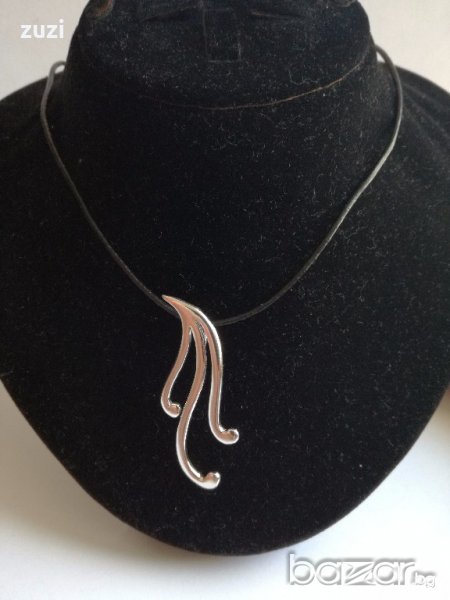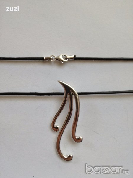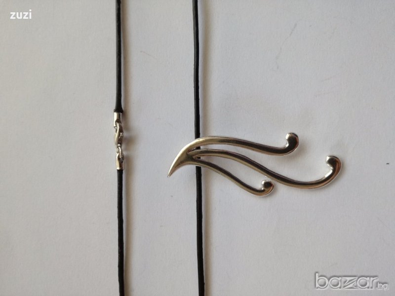 Сребърна висулка с черна естествена кожа - сребро проба 925 → Обява 18453589