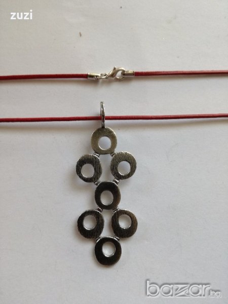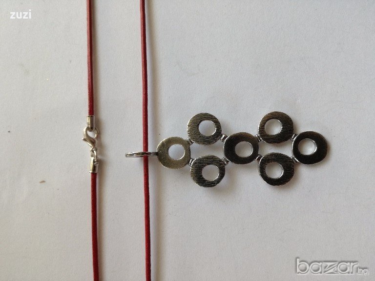 Сребърна висулка на червена естествена кожа - сребро проба 925 → Обява 18453677