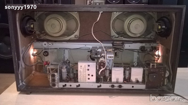 немски стерео лампов красавец...работи и е без ремонти...внесен е вчера в бг и е като нов-лъскав и гланцов лак...свети и скалата и всичко...има укв има и вградени колони и изходи за външни...има и 5-ци входове и изходи-за колекция или ползване-без липси е-пращаме със спиди или еконт с преглед и тест след превод на капаро за куриерската услуга поради зачестили некоректни потребители-поръчки само тук в саита! по телефона и със смс не! краини цени! бартери не правиме! ПАРИ НЕ ВРЪЩАМЕ! всеки ден нови неща-още 2-3 наши обяви тук