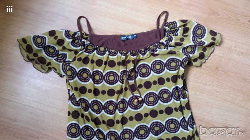 Свободна е и затова не знам какво да меря. Отговаря си на размера. Може да се носи с голи или покрити рамене.