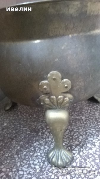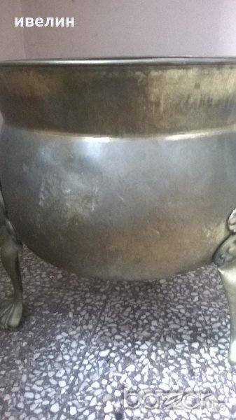 стар меден съд-мангал.крака от бронз-лъвски лапи.висок е 36см,диаметър на отвора 35см.внос от франция.