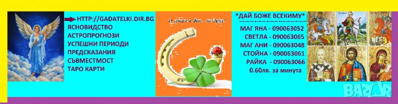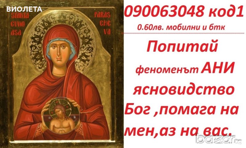 0.60.лв. код - 1 ИСТИНАТА , БЕЗ ЛЪЖИ.Поглед в бъдеще и настояще, съпровождана от духовен водач и доказана дарба, владее тайнството на 4 - те стихии. С МАГ АНИ разрешете проблема си с любовта*** подобряване на семейни взаимоотношения, откриване на подходящ партньор , просперитет и издигане в професионален план, ключът на успеха е във вашите ръце , аз ще ви помогна да отключите вратата. Астрологична карта. Открива и неутрализира отрицателна енергия .Пречистване с икони и закодиране на целебна енергия за привличане на късмет и благоденствие. маг АНИ