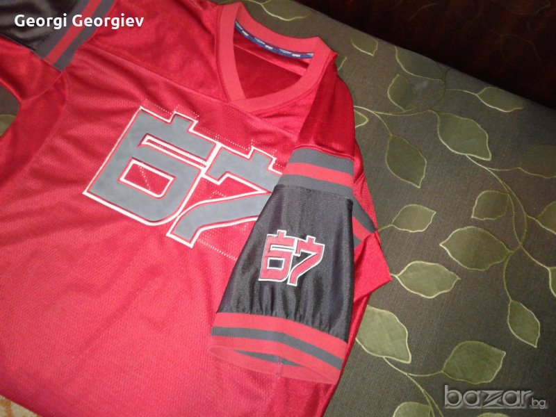 .Тениската е чисто нова,само съм махнал етикета на врата,защото дразни.Продавам я защото съм на възраст и е за младежи.Ако напишете фирмата в Гугъл и ще прочетете много за тази марка.Може да се облича и върху други дрехи.Размери...рамена 50см,гърди 62см,и дължина 80см.Може да спите с тениската,не се мачка.Цвета е наситено червено.