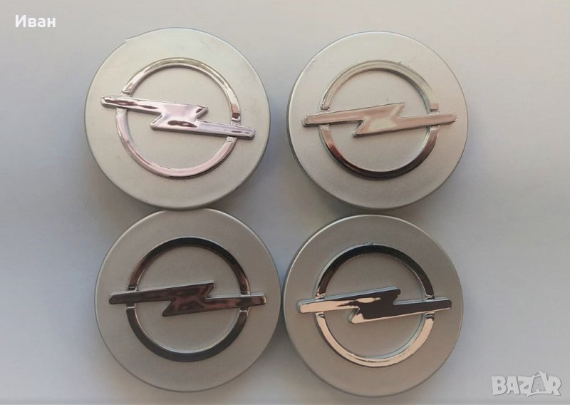 Капачки за джанти Опел с външен диаметър 59 и 65 мм, цвят сив и черен, указаната цена е за комплект от 4 бр.