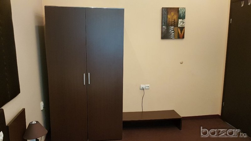 Спалнята е двойна,във всекидневната има ъглова холова гарнитура с ниска мебел ,която се разтяга и може да се ползва за децата.