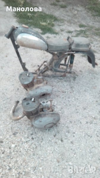 състоянието е видно от снимките. цената е примерна. на части. два двигателя, карбуратор, кривка, резервоар, амортисьори, капла, калник, рама, степенка, глава, цилиндър, седалки- кантар, ротор, капачка, пиньон, филтър и много части за балкан 250.