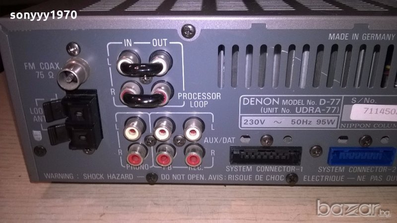 denon udra-77 много яка машинка-няма горене-цъкаш изходите на късо и изписва протект и продължава да си работи-идеална за тестване на колони и говорители-свири много здраво има и тунер с рдс-от днес 28.02.22г пращаме със спиди или еконт с преглед и тест след превод на капаро за куриерската услуга поради зачестили некоректни потребители-поръчки само в тук в саита! по телефона и със смс не! краини цени! бартери не правиме! всеки ден нови неща-още над 18000 обяви тук