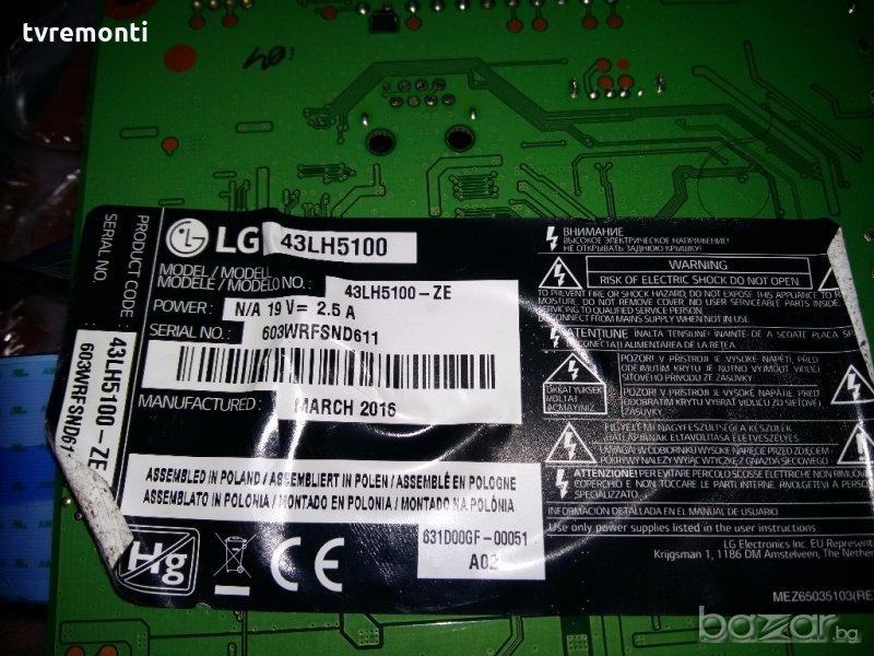 EBT64199731 EAX66826103(1.1) MAIN PCB FOR LG GENUINE 43LH5100-ZE.BEKDLJG тесвана от нашия техник
