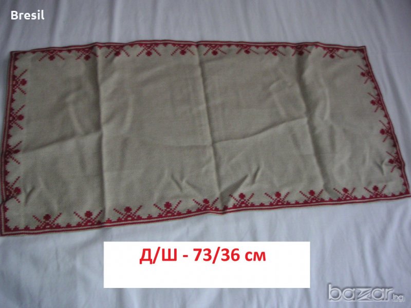 3/ Покривка с ръчна бродерия каре за маса – 29 лв. С червени шевици - Размер – 73/36 см