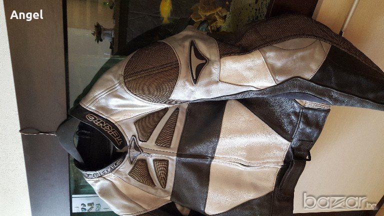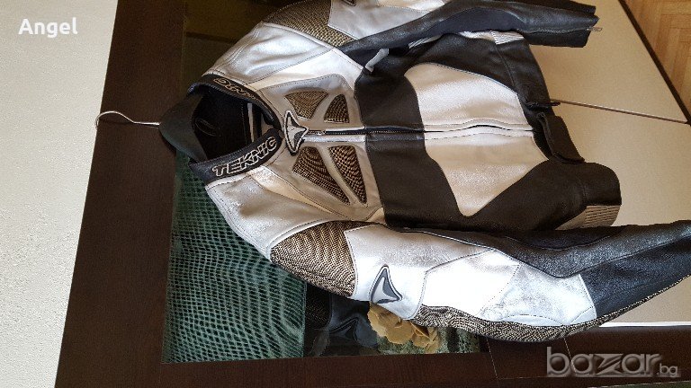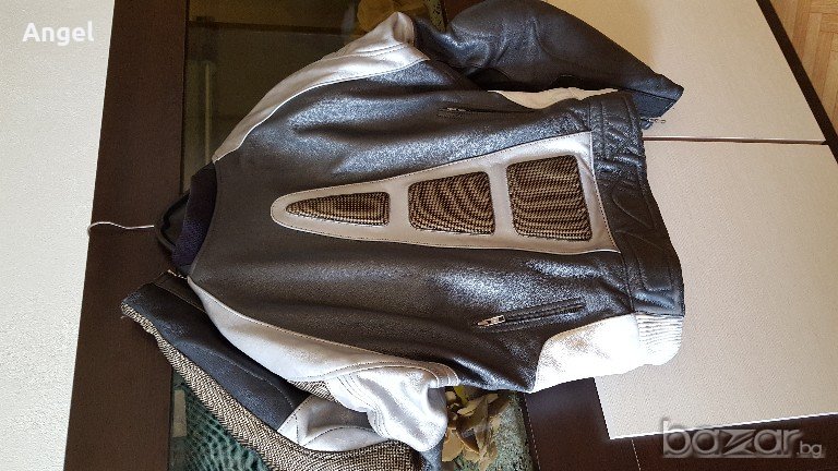 Кожено яке с протектори на рамена,лакти и гръб.Няма скъсано или протрито.Всички ципове работят.