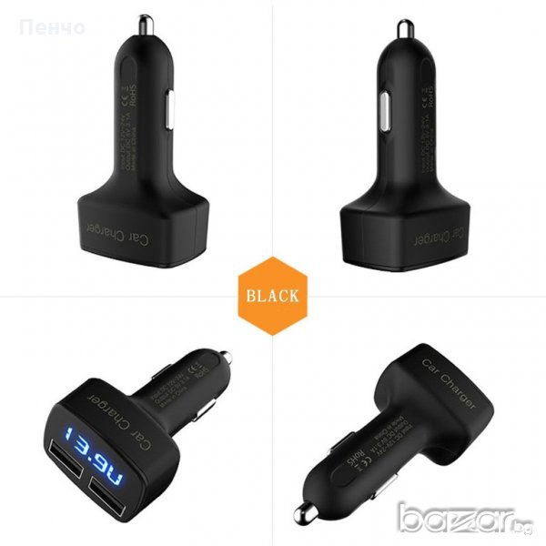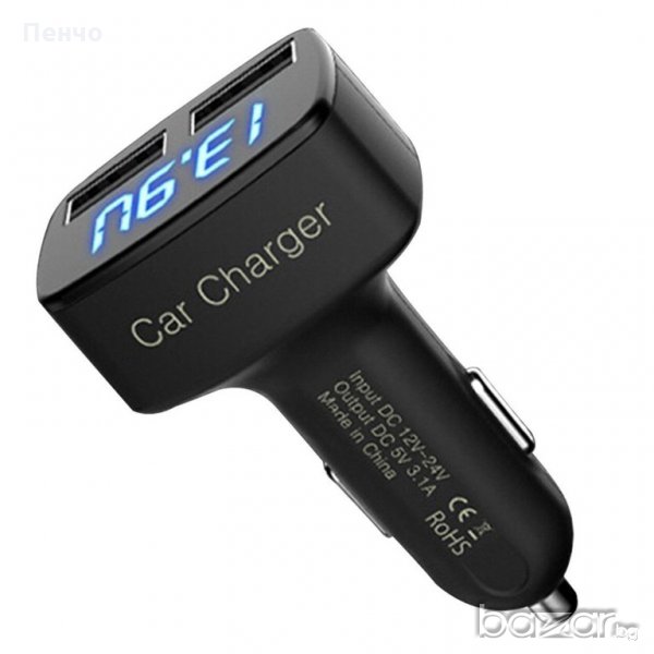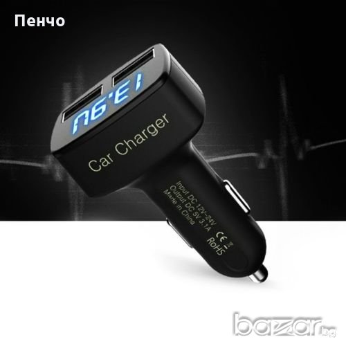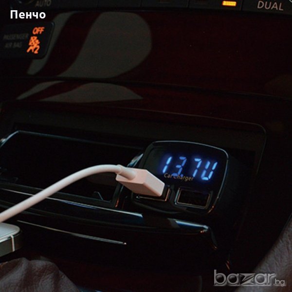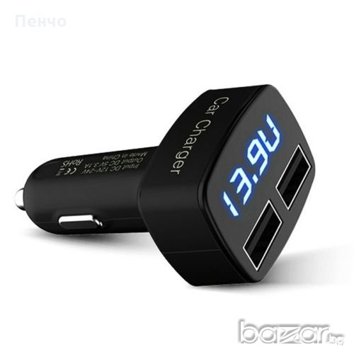 Двойно USB зарядно за кола 3.1A термометър, амперметър Волтметър 4 в 1