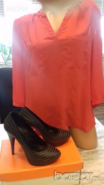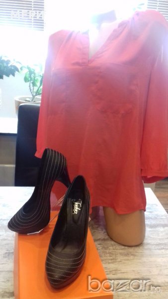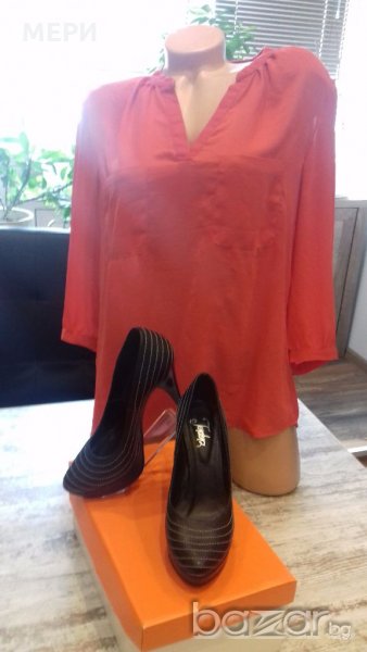 И Обувките и Блузката може да се каже, че са НОВИ, тъй като са носени броени пъти за повод, без забележки! В отлично състояние! ЦЕНАТА Е ОБЩА И ЗА 2ТЕ НЕЩА - 27 лв. Обувките са Естествени, на марката "Тенденз". С удобна платформа, въпреки височинана им! Стоят много елегантно и стилно! Страхотно съчетание кокто за дънки, така и за панталон или поличка! По скоро модела пасва, като за спортно-елегантни! Номер 38.Купувани са 79 лв. Блузката е чисто НОВА на марката H&M, купувана за 26 лв.Тя е ще ви бъде ПОДАРЪК към обувките!Много лека и приятна материя за лятото! Лесна за съчетание! Материята е падаща и не се мачка, което улеснява от гладене. Размера е европейски-46 размер. Отговоря ро скоро на размер L - XL