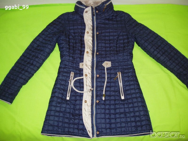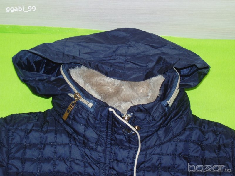 Якето е с нормални следи от употреба-няма конкретни забележки, без промяна на цвета. С плетен маншет на ръкавите, има качулка, която се прибира в яката.