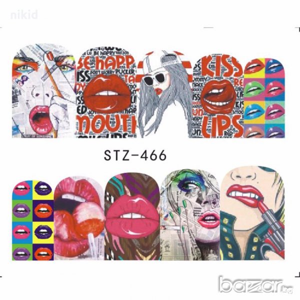 STZ-466 467 2 стилс устни кула ваденки водни стикери за нокти маникюр, снимка 1 - Продукти за маникюр - 18606755 STZ-466 467 2 стилс устни кула ваденки водни стикери за нокти маникюр, снимка 2 - Продукти за маникюр - 18606755 STZ-466 467 2 стилс устни кула ваденки водни стикери за нокти маникюр, снимка 3 - Продукти за маникюр - 18606755 1/3