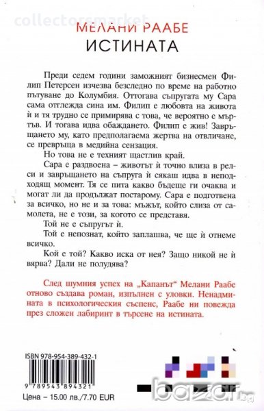 След шумния успех на "Капанът" Мелани Раабе отново създава роман, изпълнен с уловки. Ненадмината в психологическия съспенс, Раабе ни повежда през сложен лабиринт в търсене на истината.