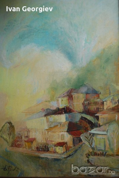 Маслени бои върху платно, размер 105х72 см., размер без рамка 97х64 см.