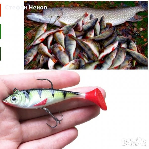 Меко е и при стискане (захапване) се показва двойната кука в задната част на тялото. Целият комплект (5 бр.) - 20 лв.