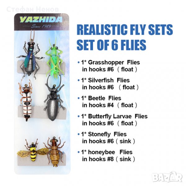 Изкуствени мухи, скакалци, бръмбари и ларви → Обява 18620234