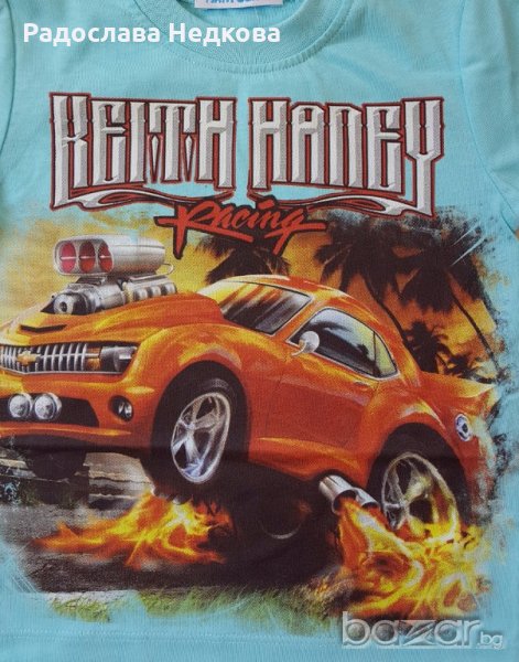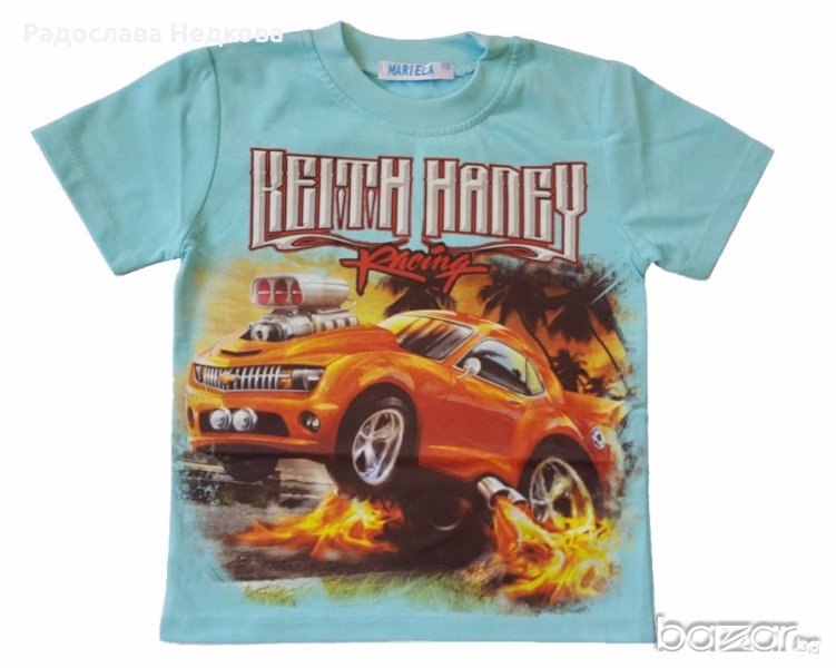 Страхотен летен комплект за момче - тениска с апликация на Кола отпред и тъмно сини панталонки. Българско производство! Налични размери - 92,98,104 см.