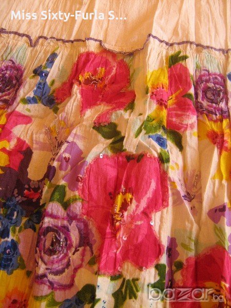 с флорални мотиви, пайети и мъниста в долната част. Размер 38 по