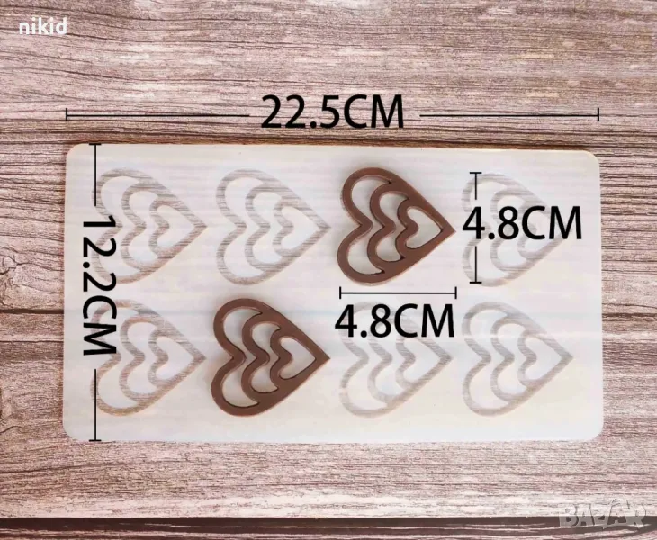 8 сърца сърце с вълнички топер борд силиконова форма молд за украса декорация торта фондан шоколад → Обява 18648001