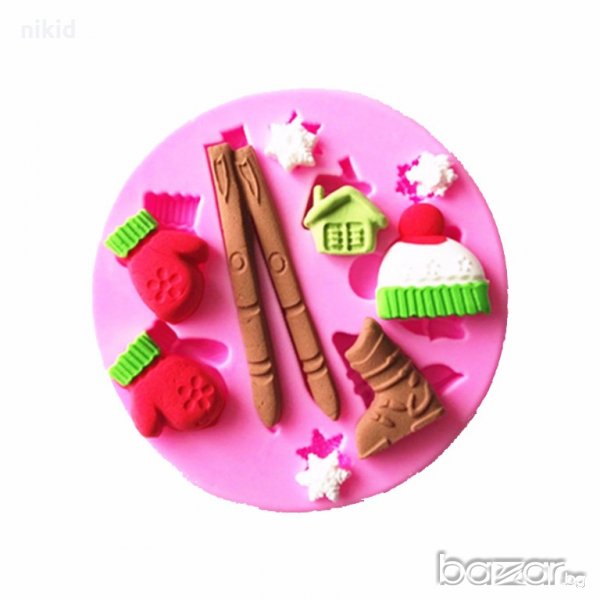 Зима шапка ръкавици ски силиконов молд форма за украса торта мъфини с фондан шоколад, снимка 1 - Форми - 18649433 Зима шапка ръкавици ски силиконов молд форма за украса торта мъфини с фондан шоколад, снимка 2 - Форми - 18649433 1/2