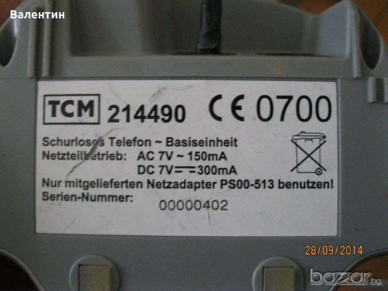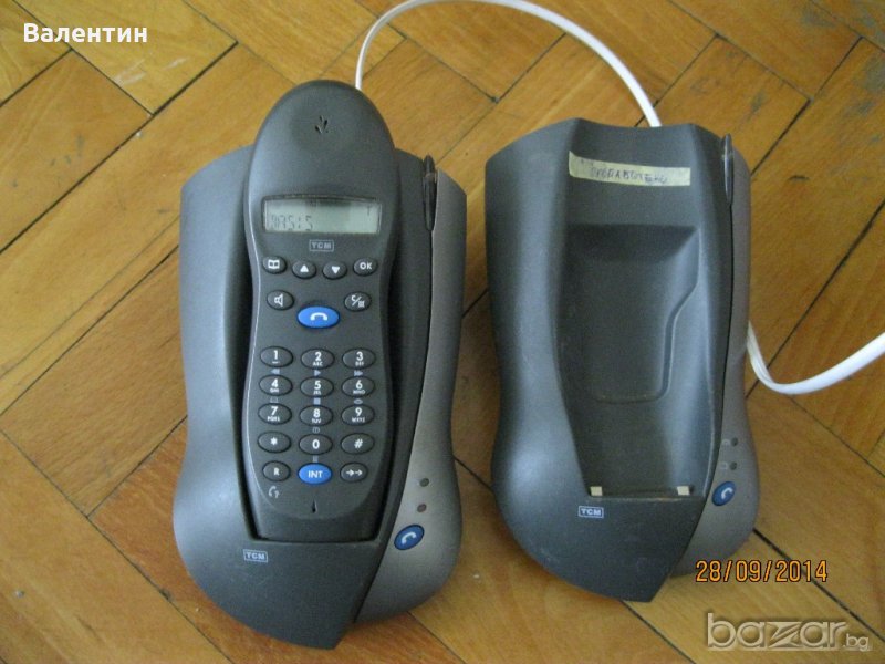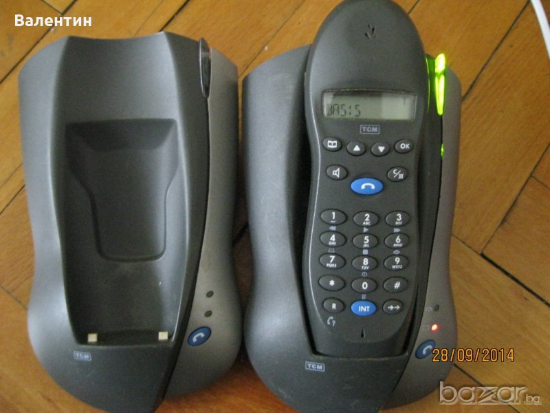 2. Dect безжичен телефон TCM - 2 бр. слушалки с 2 бр. приемници - светят, зареждат, не са тествани за нашите стационари. В комплекта се включва преработено зарядно за двете станции наведнъж. Цена: 6