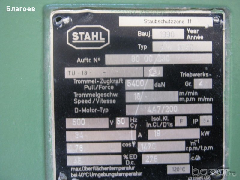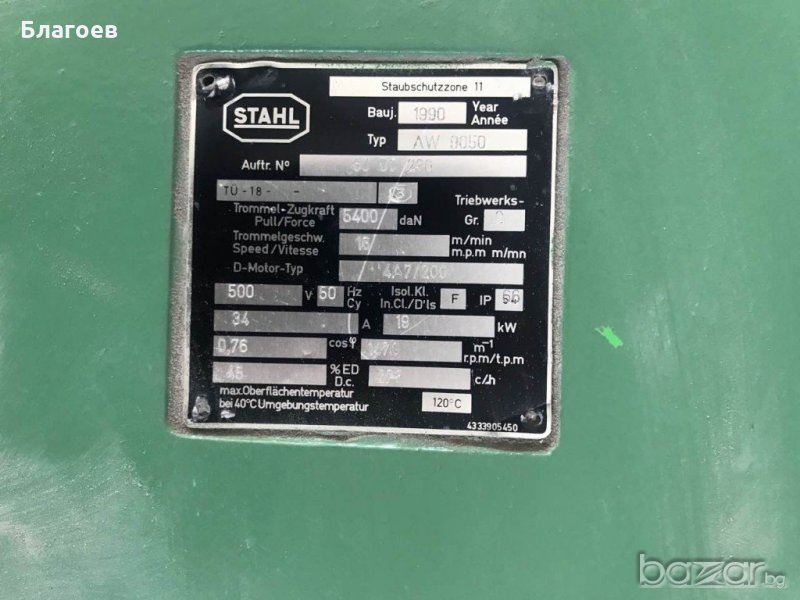 Взривозащитен Ел.мотор STAHL Staubschutz Zone 11 Type.AW9050 D.Mot Type.4/A7/200, 19 KW, 1470 оборота, произведен в Германия през 1990 г.