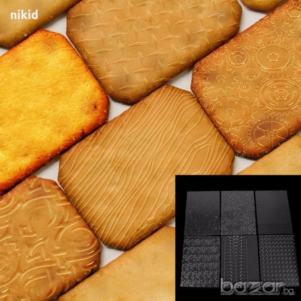 1 ВИД 6 бр големи релефни текстурни пластмасови стенсил подложки отпечатък борд торта фондан гума → Обява 18658152