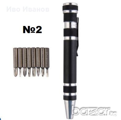 №2 Магнитна отверка 8 в 1Нова прецизна магнитна отверка с 8 накрайника, модерен дизайн.Комплекта предлага най-използваните накрайници. Накрайниците са от инструментална стомана. Цвят-черен.Цена-10лв.